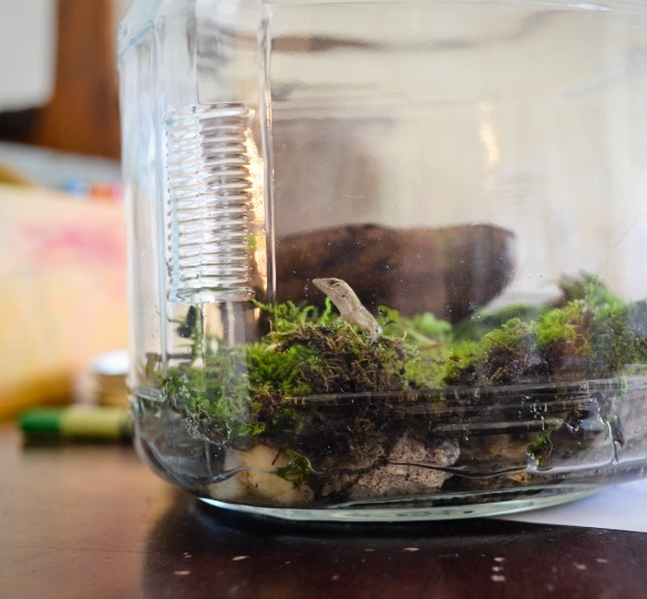 On any given day, you will find my children covered in dirt and grime. I really would like not to bathe them everyday, but that’s pretty much impossible around here. Once we are done with school, they make a beeline for the backyard. They are forever hunting down lizards, snails, frogs, worms, spiders, and the list goes on. I was summoned to the backyard yesterday where they proudly showed off the flies they fed a spider. Well…that’s not really my thang, but I’m sure the spider was appreciative of their efforts. They build these little forts for their creatures…usually out of twigs, leaves, and rocks…pretty much whatever they can get their hands on. I do love their imaginations and the way they love nature.