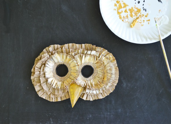 I made Annie’s owl mask out of brown kraft paper that I have been storing up from Amazon Prime deliveries. What? I hoard packaging supplies…don’t you? It turned out really cute! I wanted to do a tutorial, but I ran out of time. Maybe next year.