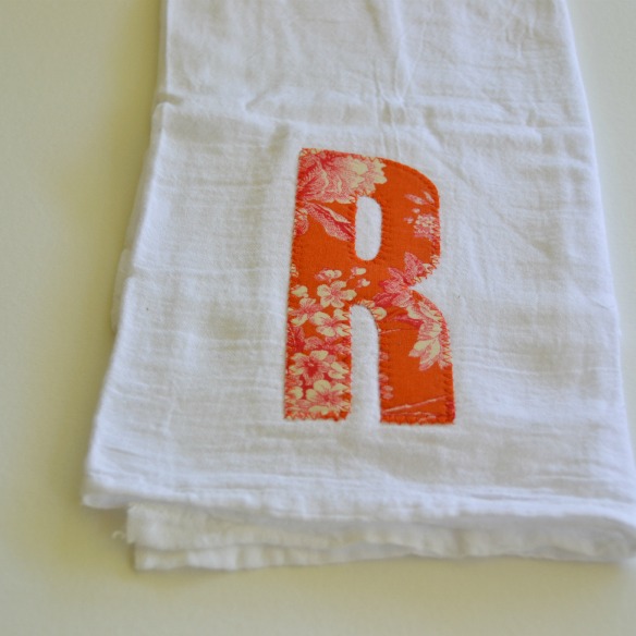 You know what makes a really great gift? Personalized dishtowels. You can get a 4 pack of flour sack towels at Target for $3.99. You know what plain flour sack towels are good for? Appliqué.