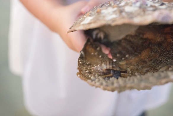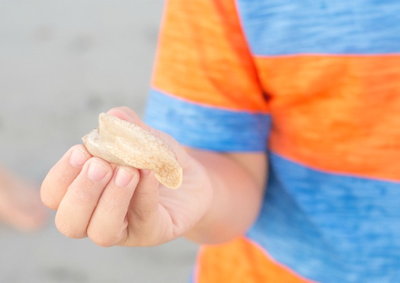 We came home with several dead sandollars and a bunch of other shells. Somehow, two of the tiniest little guys made it home hidden amongst our loot. It’s against the law to remove any of the live shells from the beach, which is why I’m pretty sure my foot was impaled with the pointiest shell ever as we were leaving. Ouch!