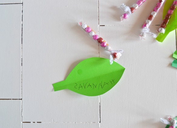 Fold both ends of green cardstock towards the middle and draw leaf shape. (I made a pattern)