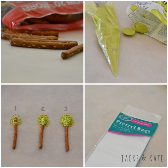 - pretzel bags {I like the make n mold brand because they are slightly wider. If you get the Wilton brand, just don’t make your tree too big.}