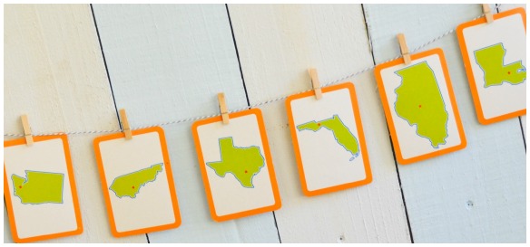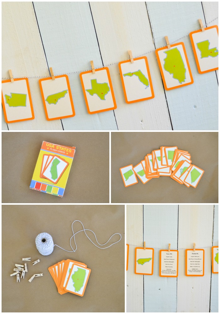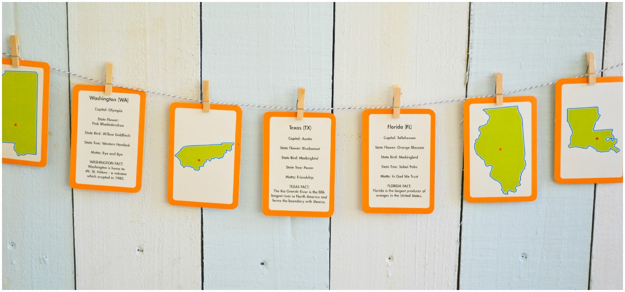 A while back, I stumbled across these United States flash cards at a local thrift store for .25 cents. I have a serious crush on all things United States, plus I absolutely loved the colors of these…so I snatched them up.