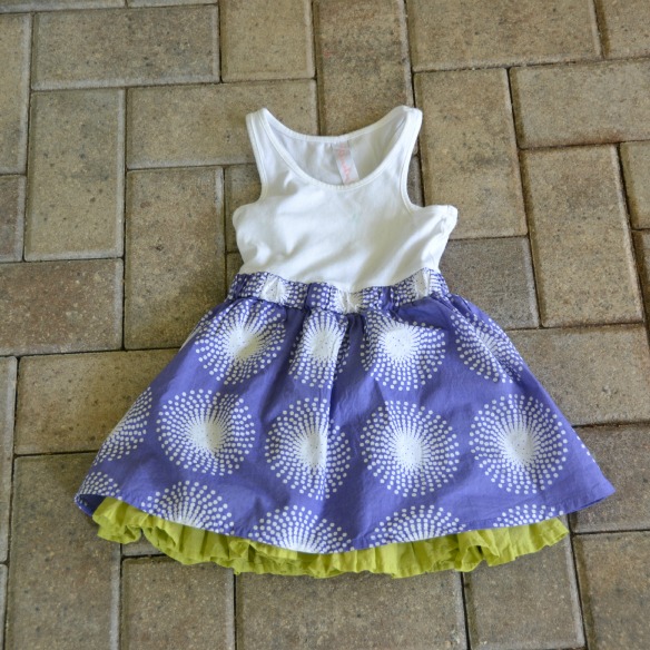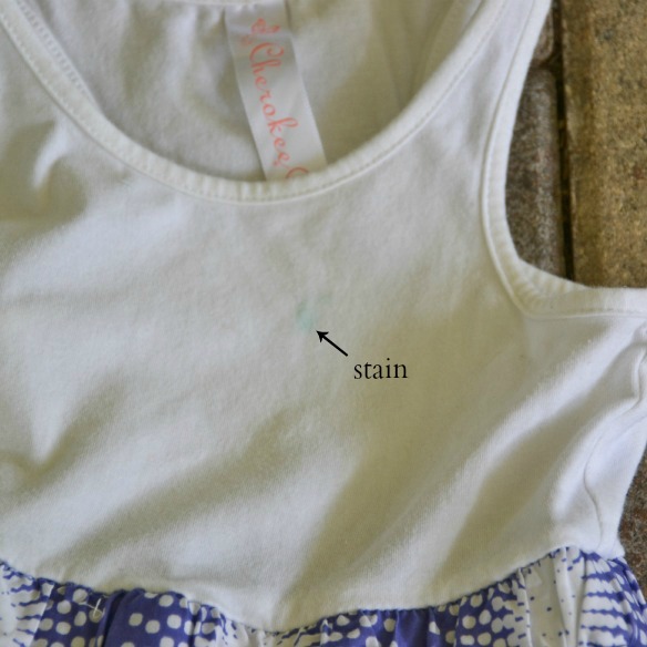 I love hand me downs. I love the stories they tell. Simple or not, I can remember something about each hand me down I’ve saved. This was one of my favorite dresses on Savannah. It fit her perfectly, and her big blue eyes just radiated in this dress. I remember it was a Target find. At some point, it got a little blue stain that I could not get out. I knew then I could save it with appliqué, but she was so close to outgrowing it, I put it away in one of the rubbermaids in her closet. It wasn’t until a few weeks ago, I pulled out one of the rubbermaids and began sorting clothes that Annabelle could now wear. I think I actually squealed when I found this dress. It had been tucked away for a couple of years, so I had long forgotten about it. I was so excited that I had saved it! All it needed was a quick appliqué treatment and it would be ready to wear again.