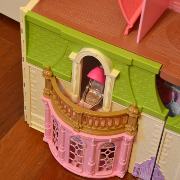 And then there’s this little gem. Lately, every time I walk into Annie’s room, this jogging stroller is positioned on the balcony of the dollhouse. Empty. Just sitting there….á la The Changeling. It creeps me out, so I always push it back in the dollhouse…only to return later and find it like this again. Someone is messing with me.