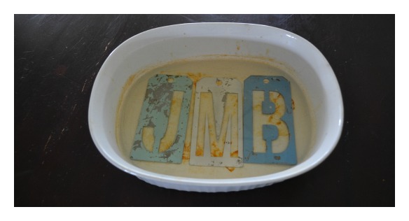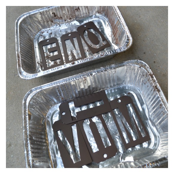 …I let the letters sit in the paint stripper overnight…then, I removed them and lightly brushed them with a fine steel wool to remove any stuck on paint. You don’t want any scratch marks…so make sure it’s fine steel wool. I thought they looked great like this..but, I wanted them a little more rough looking…