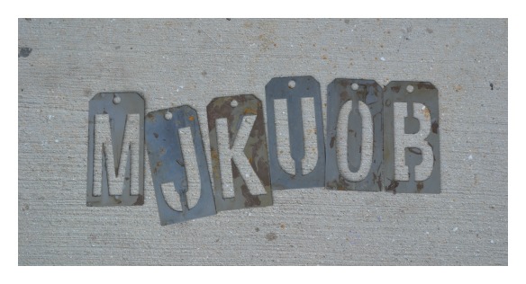 I came across these metal stencils at Michaels a while ago…and I just knew they would make the coolest piece of wall art. For $1 a piece..I bought one of every letter they had and quickly started my aging process.