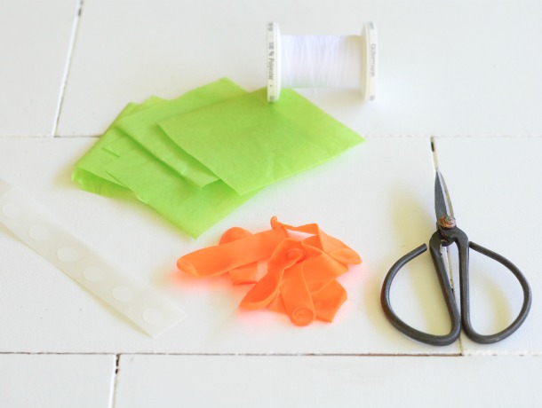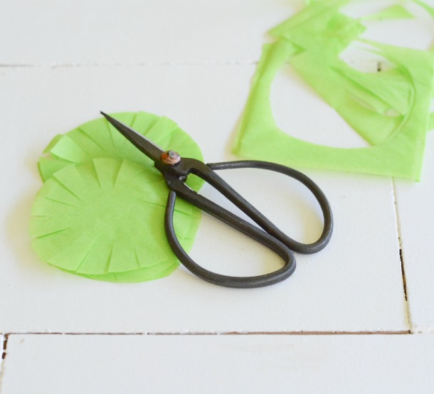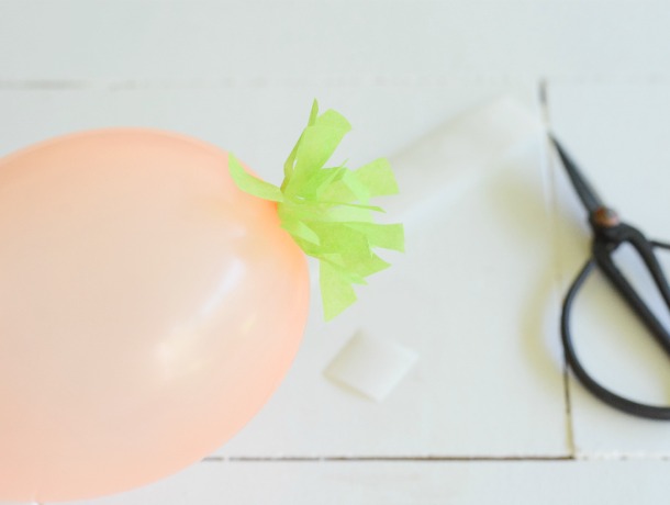 To make the carrot tops, cut green tissue paper into 2×2 squares.
