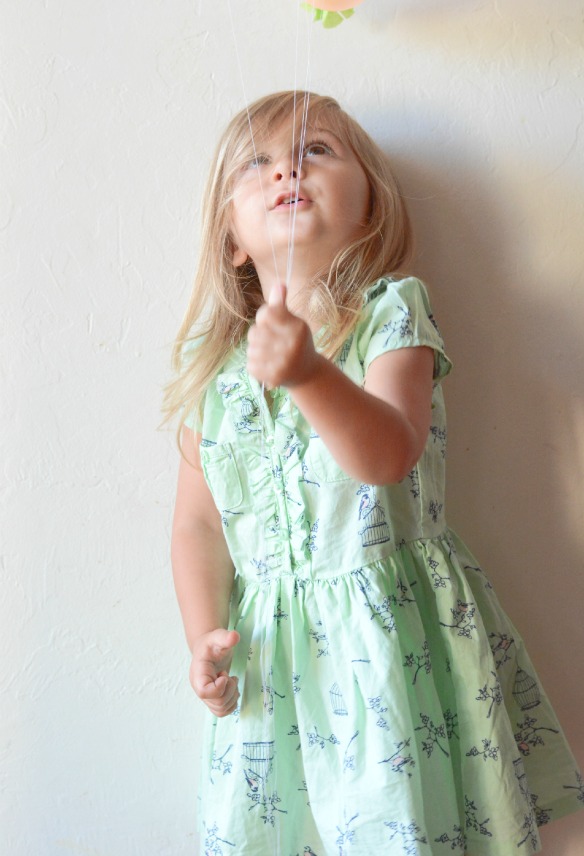 After blowing up all balloons, tie a piece of white thread on each balloon.