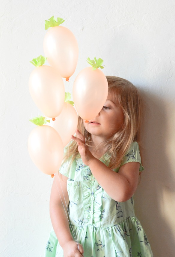 Easter is just around the corner and I’m in full on, “what can I turn into a carrot?” mode. Last year, I made this bunny food and it was a big hit! This year I have a few more carrot ideas….like these mini carrot balloons. How fun are these?