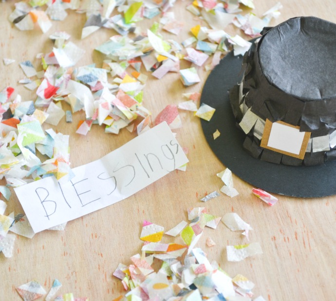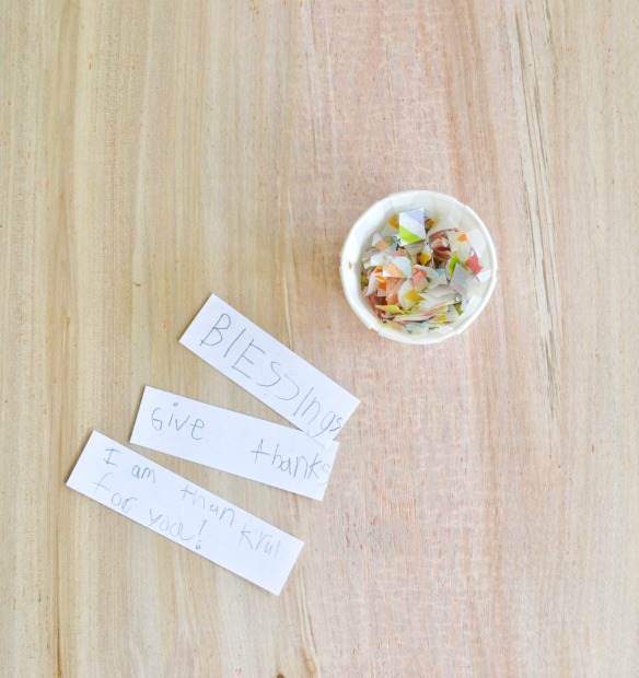 Cut small strips of white cardstock and have your child write Thanksgiving messages.