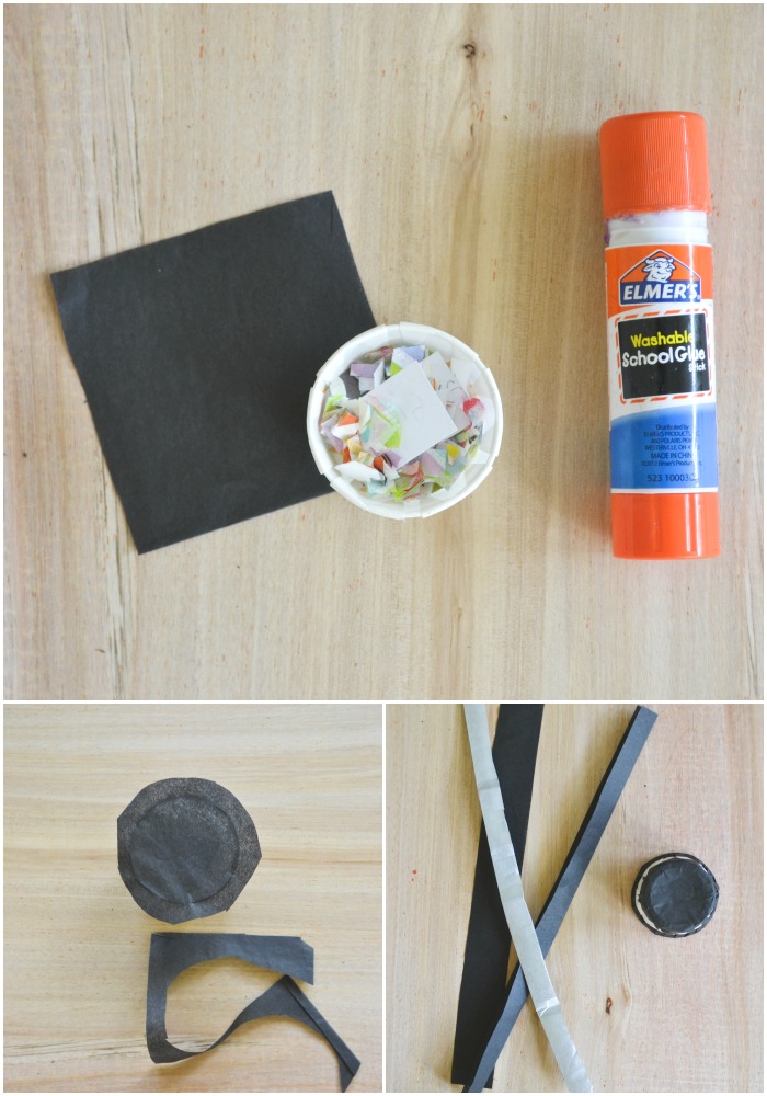 Black and silver tissue paper (or crepe paper..use what you got!)