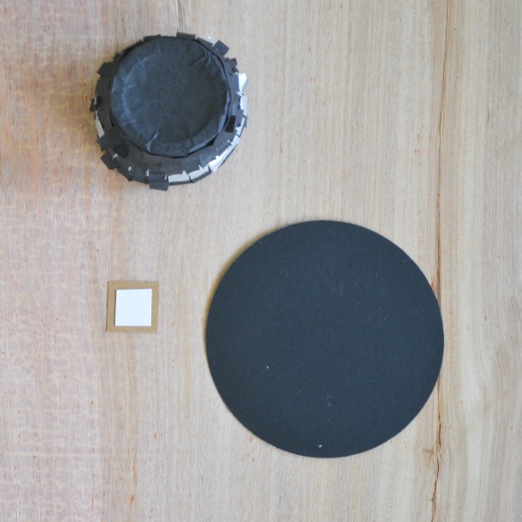 Cut a small square of black tissue paper and secure with glue on to cup opening.