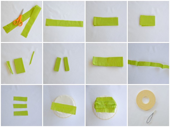 - after the final green fringe has been attached around the top…add two small pieces on each end on top of the cup.