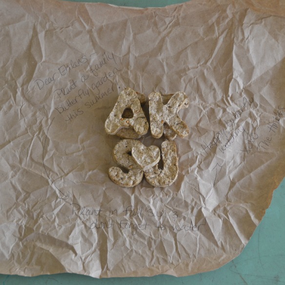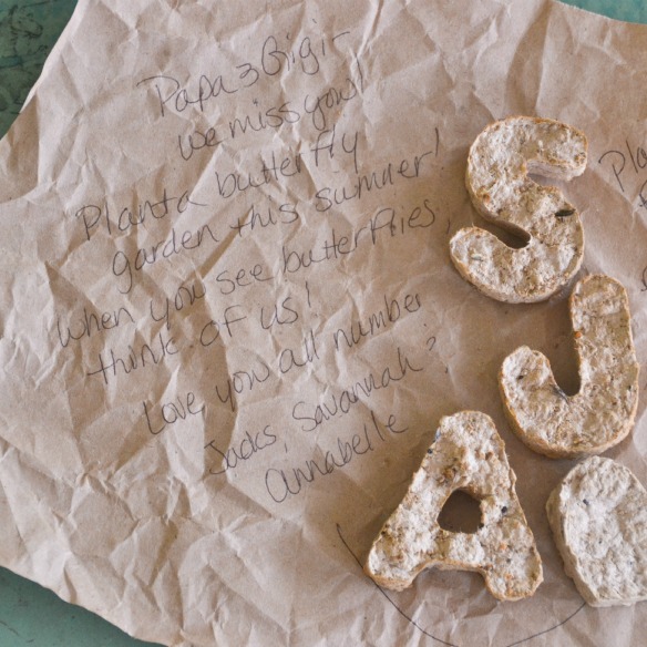We sent a butterfly garden to my parents in Texas. That’s supposed to read, Love you all numbers, but it seems my pen stopped writing midway through the r. Naturally, I’m seeing it for the first time now. Oh well, they’ll know.