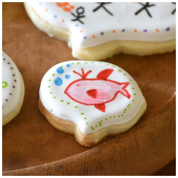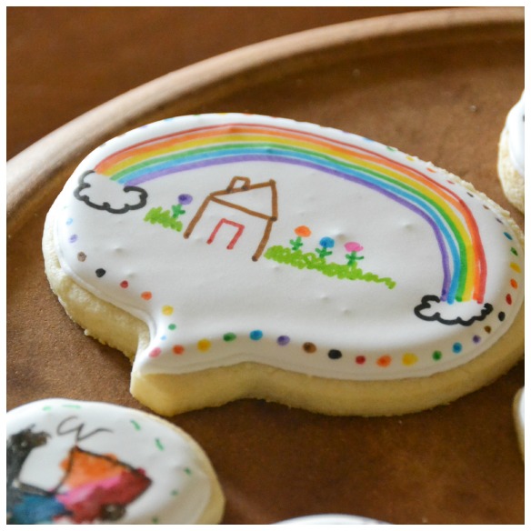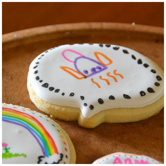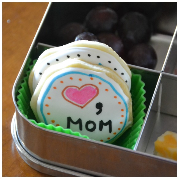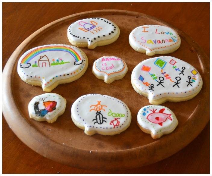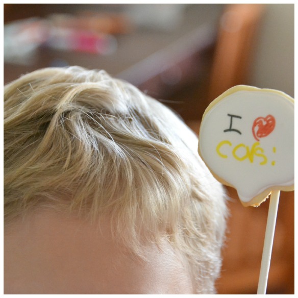 I baked up a batch…iced them…and left them to dry overnight. Now…this is where the real fun begins! I handed out the cookies and armed my children with food writer markers. Write or draw what’s in your thoughts. Just have fun! I put a few of the small ones on sticks and even tucked some in Jackson’s lunch.
