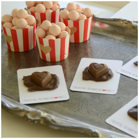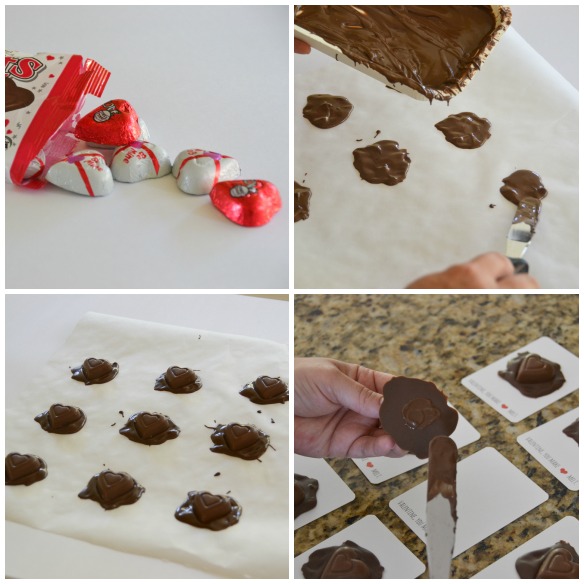 - spoon individual melt blobs onto parchment paper {big enough that your heart will sit in the center}